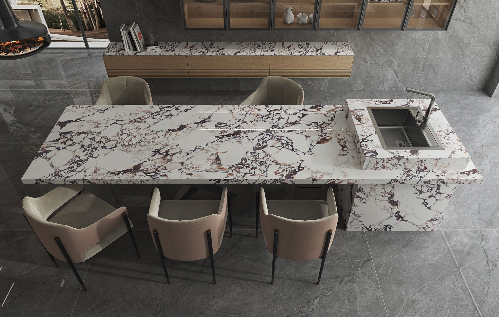 마블에서 우드까지, 공간의 무드에 맞는 다양한 패턴을 제공합니다.
